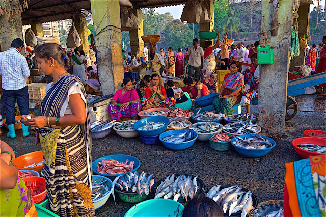 Une des plus vieux quai de Mumbai, construit en 1875, il est aujourd'hui le plus important port de pêche et marché de poisson de Mumbai...J'y ai fait un tour aux petites heures (4h45am) avant que la folie suivant l'entrée des bateaux ne soit terminée. à 8h30 tout était presque vendu et le marché tirait à sa fin. Tout ce que j'ai porté et caméra ont sentis le poisson pendant 1 semaine. (Dure pour la photographie car très sombre...j'ai laissé le jaune des ampoules tungstène pour préserver l'ambiance qui y régnait).